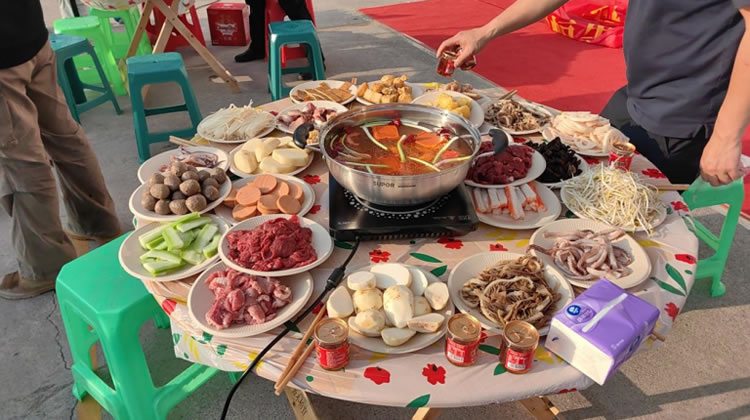 緊接著,香氣四溢的火鍋端上桌,大家圍坐在一起,舉杯共飲,歡聲笑語回蕩在空氣中。邊品嘗著美味的火鍋,邊欣賞著公司隱藏歌手們帶來的精彩表演。風格各異的歌聲,或深情動人,或激情澎湃,與天邊的夕陽相互映襯,構成了一幅溫馨美好的畫面。