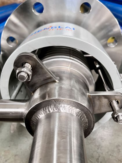 磺槍需在焚硫爐冷熱交替環境中長時間使用,為確保焊縫不出現失效泄漏,焊接質量至關重要。為減少焊縫失效泄漏,我們在高效磺槍組對焊接過程中,嚴格按照《高效磺槍制造技術標準》進行作業。每一道焊縫均充入高純氬氣,對槍身進行置換,確保焊接過程中材料不被氧化,避免出現氣孔或缺陷。310S材料因其導熱速度快,在焊接過程中易產生較大的熱應力變形。為有效降低焊接熱應力引起的變形,我們在每道焊縫完成后,均會耐心等待其自然冷卻,再進行下一道焊縫的焊接作業。