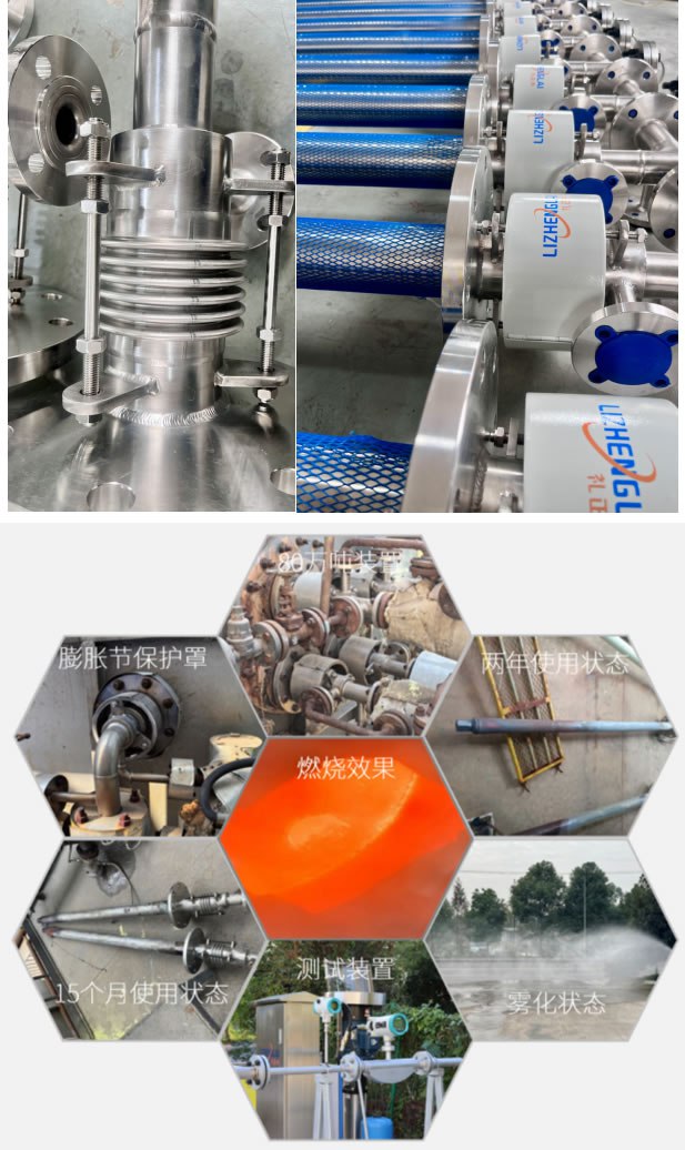 高效磺槍安裝在焚硫爐狹小空間上,每次裝置大修都要拆卸磺槍,由于高效磺槍膨脹節薄弱容易在拆卸過程中受到敲擊,因此我們設計了膨脹節防護罩和軸向固定桿。