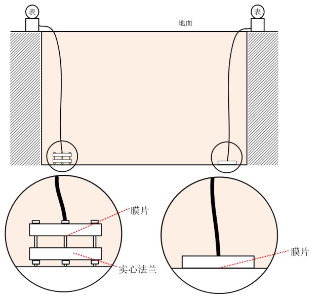 在測量過程中,應盡量保證隔膜位于槽底。然而,若槽底沉積有少量雜質,這些雜質將直接接觸到法蘭和膜片,影響測量結果,甚至可能導致膜片劃破。為避免這一問題,建議在隔膜法蘭上加裝一片法蘭作為底座。這樣,即使存在少量雜質,也能有效隔開其對測量的干擾,防止膜片因直接接觸槽底而摩擦損壞,從而起到保護膜片的作用。