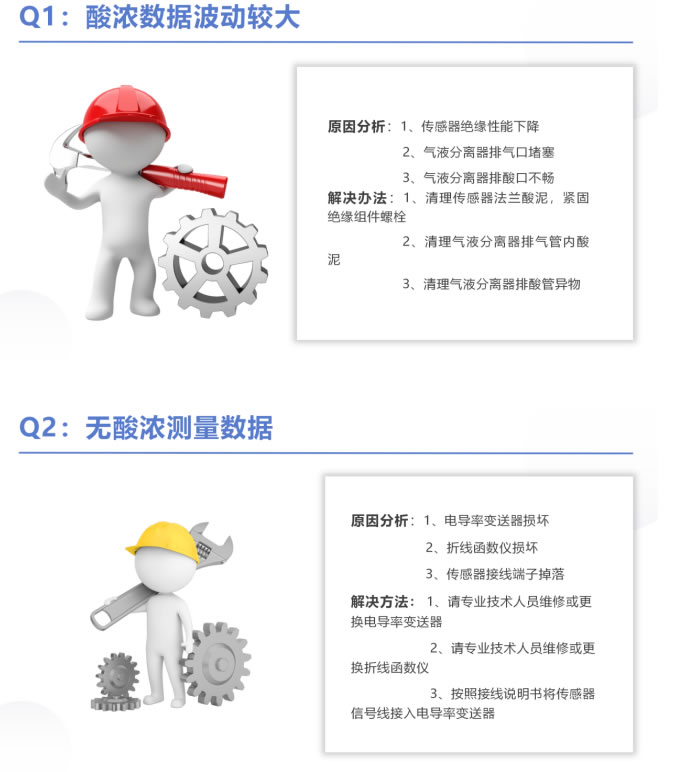 (1)正常運(yùn)行時(shí)觀察傳感器法蘭連接處是否有酸泥產(chǎn)生,排氣管是否正常;