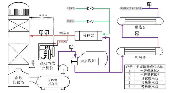 余熱回收系統(tǒng)高溫酸濃分析儀安裝示意圖: